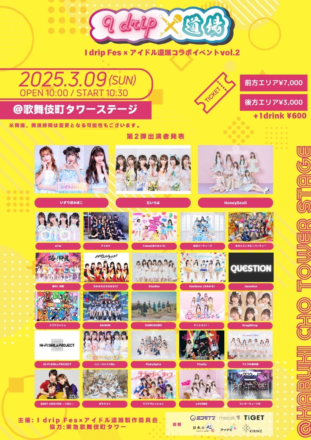 プエラの絶対値、スプスラッシュ、SAISON、泡沫パーティーズ、LOVEME、Question、ポラライト、ハニースパイスRe.、テンシメシ໒꒱、PinkySpice、おちゃメンタル☆パーティー、Drug&Drop、I’mew(あいみゅう)、かかかぶぶぶききき!!!、BABY-CRAYON〜1361〜、ラブアグレッション、Finally、SOMOSOMO、kimikara(きみから)、Hi-Fi GIRLs PROJECT、踊れ!神風、ai*ai、KissBee、アイオケ、ワンダーウィード天