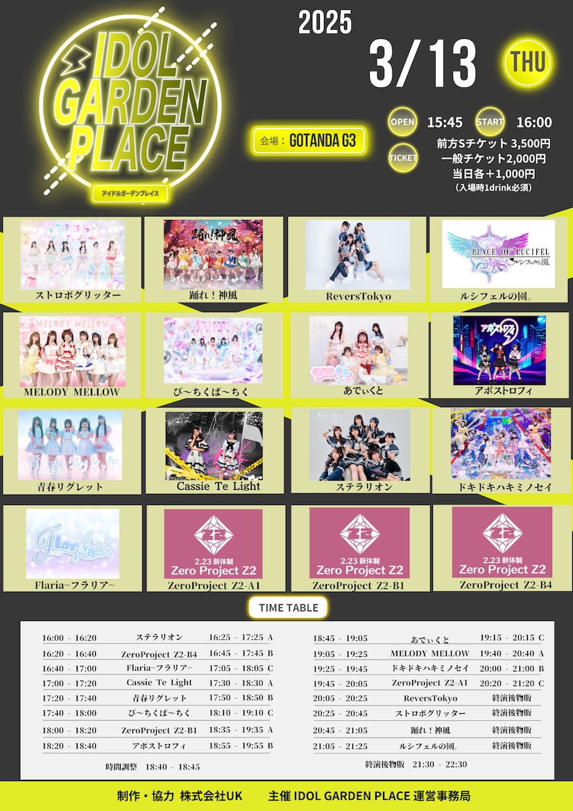 ■出演:踊れ!神風/青春リグレット/ストロボグリッター/ドキドキハキミノセイ/あでぃくと/ReversTokyo/MELODY MELLOW/Flaria~フラリア~/ステラリオン/Cassie Te Light/ぴ〜ちくぱ〜ちく/ZeroProject Z2-A1/ZeroProject Z2-B1/ZeroProject Z2-B4/アポストロフィ