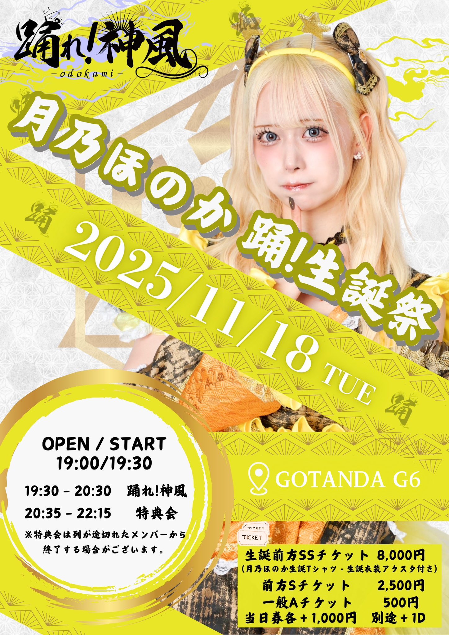 💛【月乃ほのか】踊!生誕祭💛 🗓️2025年11月18日(火) 📍GOTANDA G6 〒141-0031 東京都 品川区 西五反田 2-6-3東洋ビルB1階 ⏰OP19:00/ST19:30 🎫 【生誕前方SSチケット […]