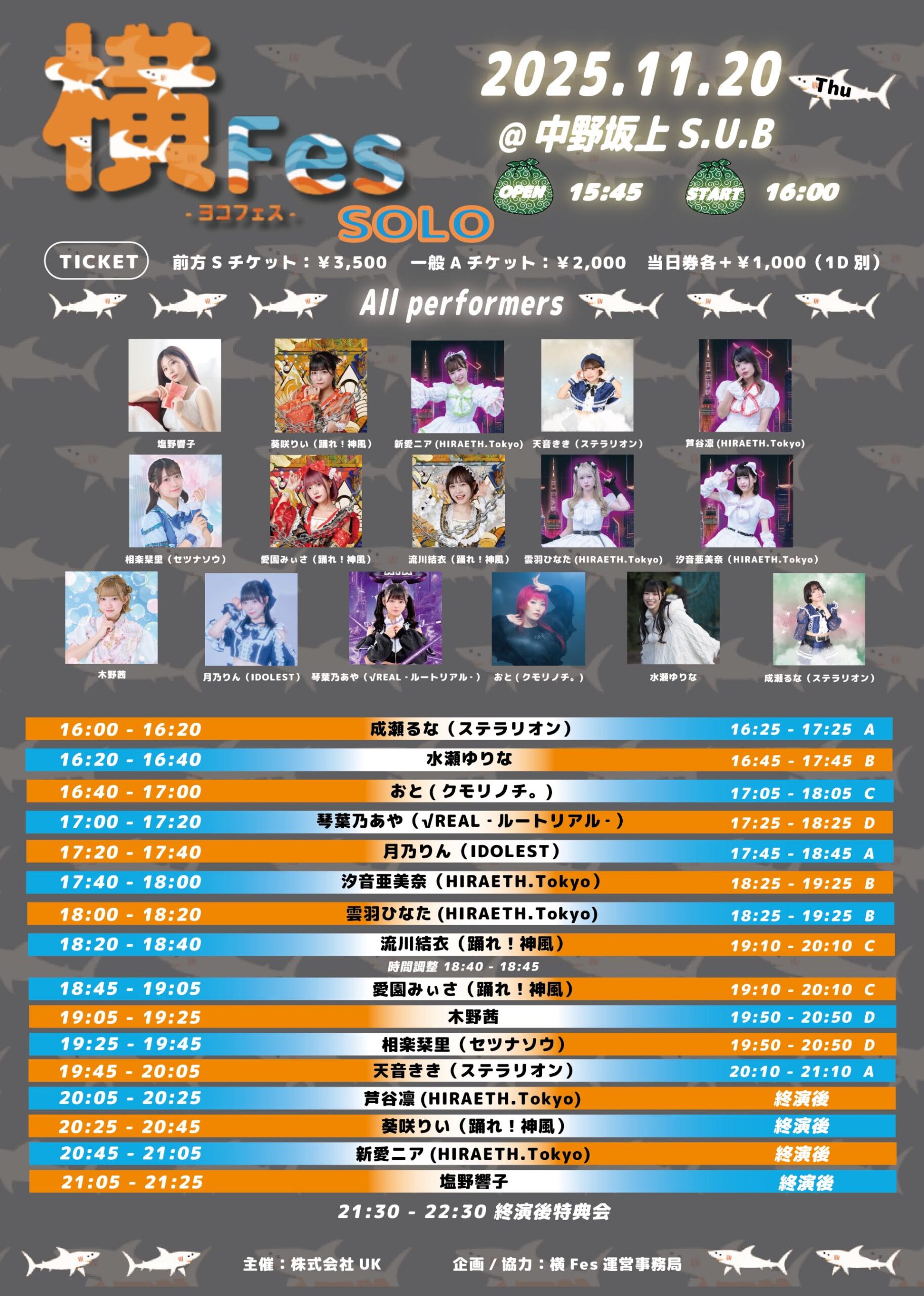 『横Fes-ヨコフェス-SOLO-』 🗓2025年11月20日(木) 📍中野坂上S.U.B ⏰OP 15:45/ST 16:00 🎫前方3,500円/一般2,000円/当日各+1,000円 (各+1D) 🤍流川結衣 🎤1 […]