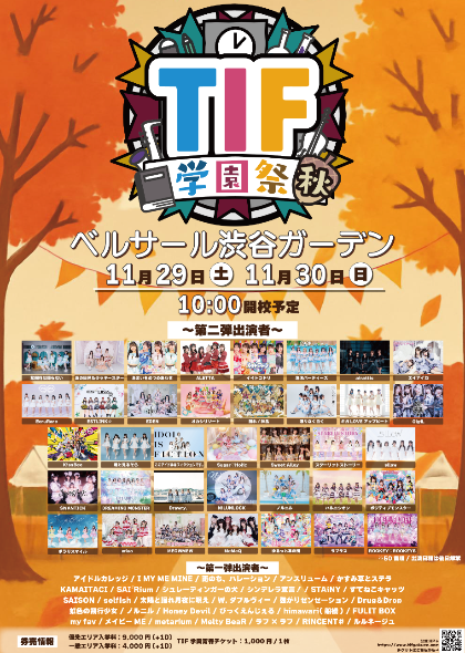 『TIF学園 「学園祭」秋』 🗓2025年11月29日(土)11月30日(日) ※出演日は後日お知らせ 📍ベルサール渋谷ガーデン ⏰OP 10:00ST 未定 🎫優先エリア9,000円/一般エリア4,000円 (各+1D […]
