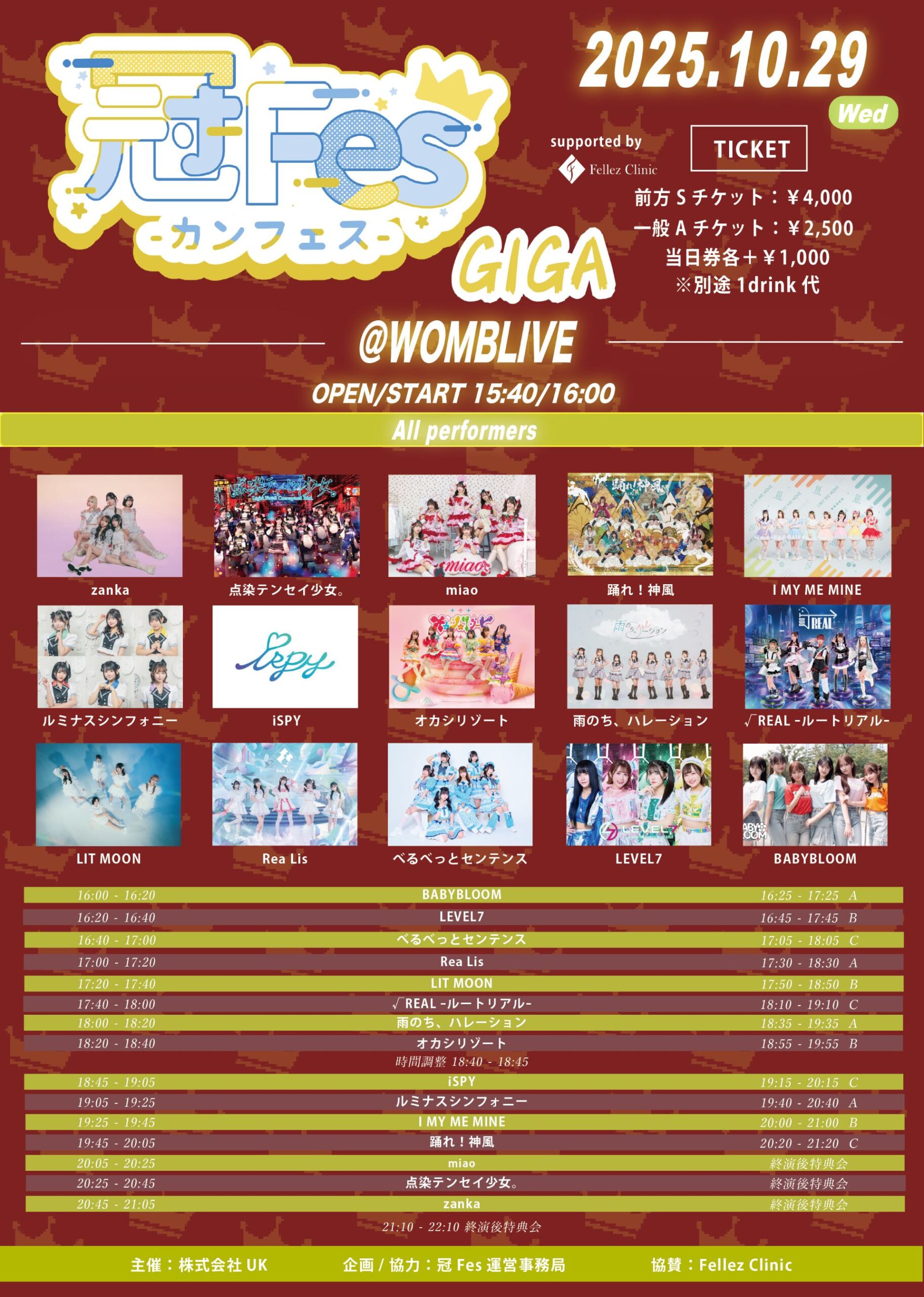 『冠Fes-カンフェス-GIGA』 🗓2025年10月29日(水) 📍WOMBLIVE ⏰OP 15:40 ST 16:00 🎫前方4,000円/一般2,500円 当日各+1,000円 (各+1D) 🉐指名入場特典追加🉐 […]