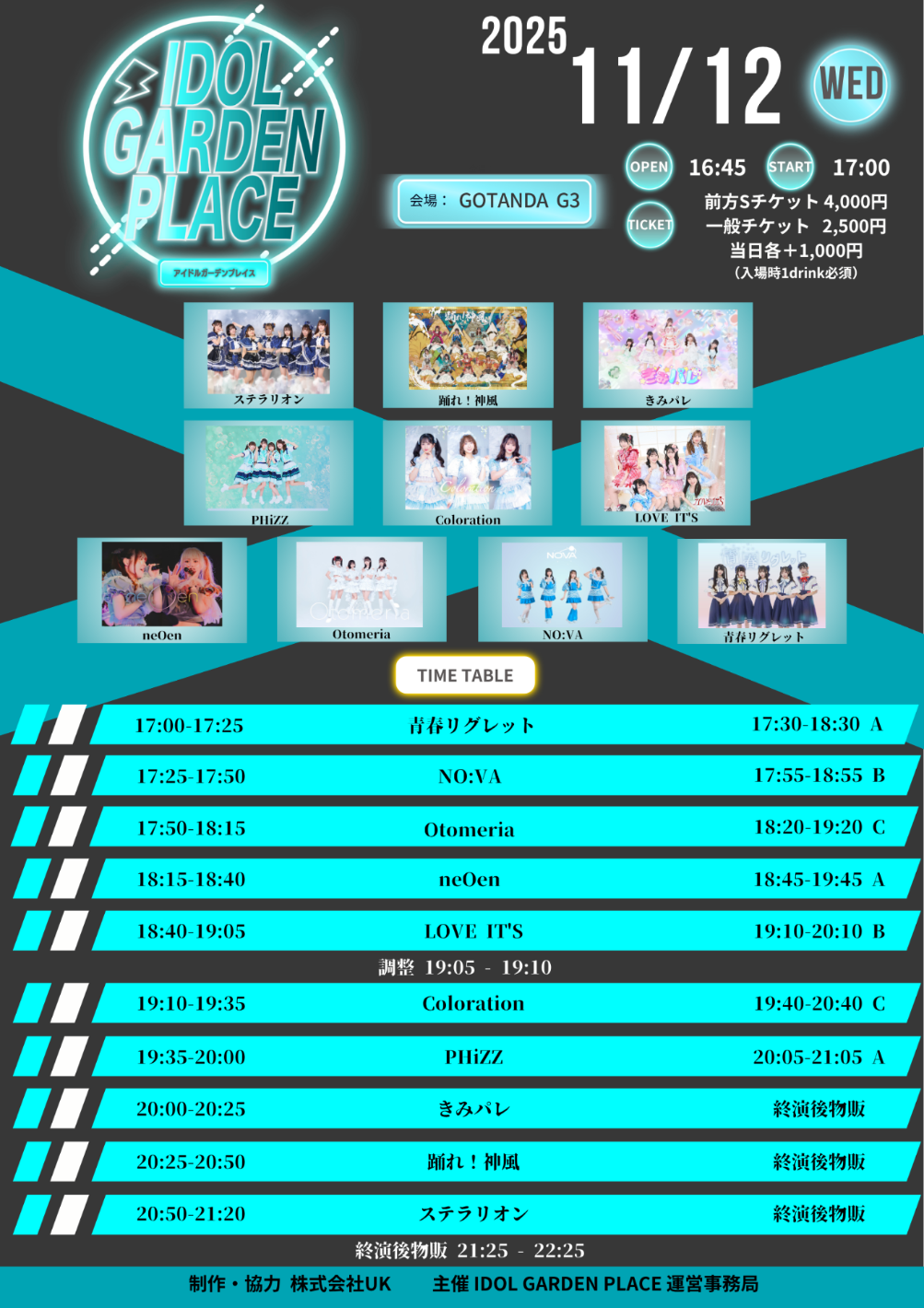 『IDOL GARDEN PLACE』 🗓2025年11月12日(水) 📍GOTANDA G3 ⏰OP 16:45/ST 17:00 🎫前4,000円/一般2,500円/当日各+1,000円 (各+1D) 🎤20:25~ […]